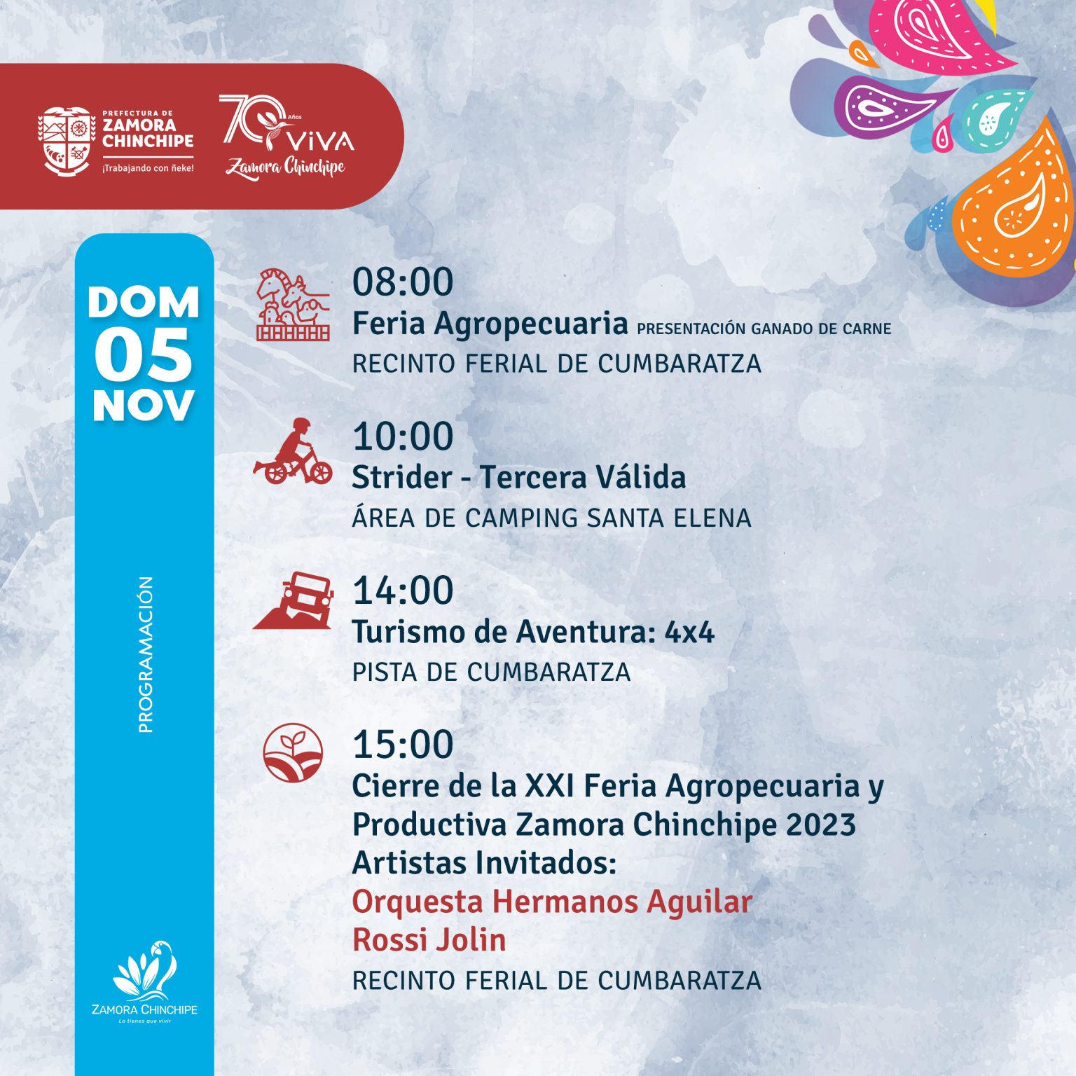 AFICHE PROGRAMA ZAMORA CHINCHIPE 70 AÑOS DE PROVINCIALIZACIÓN 26 Publicado el 31 de octubre de 202331 de octubre de 2023 por Carlos Medina ← Anterior Siguiente →