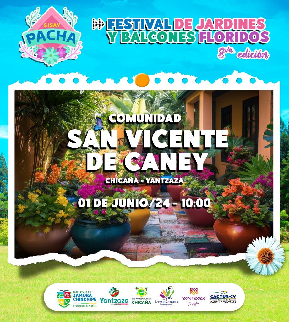 Con el objetivo de fortalecer el turismo, la prefecta Karla Reátegui, junto a María Lalangui alcaldesa de Yantzaza y autoridades locales realizaron el lanzamiento del 8vo Festival de Jardines y Balcones Floridos en la comunidad de San Vicente de Caney, de la parroquia de Chicaña. La Prefectura aporta con USD. 4.000 y la Alcaldía de Yantzaza con USD. 1.000 para la ejecución de este festival.