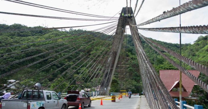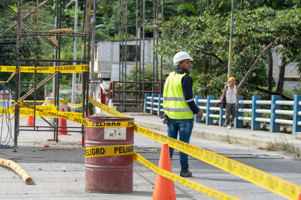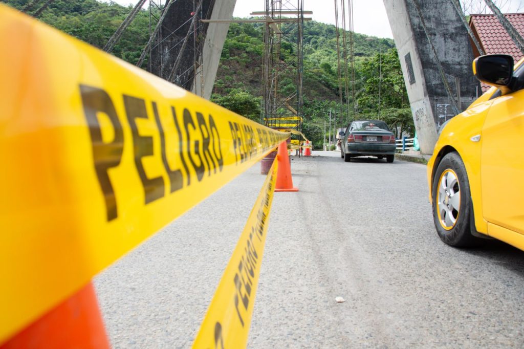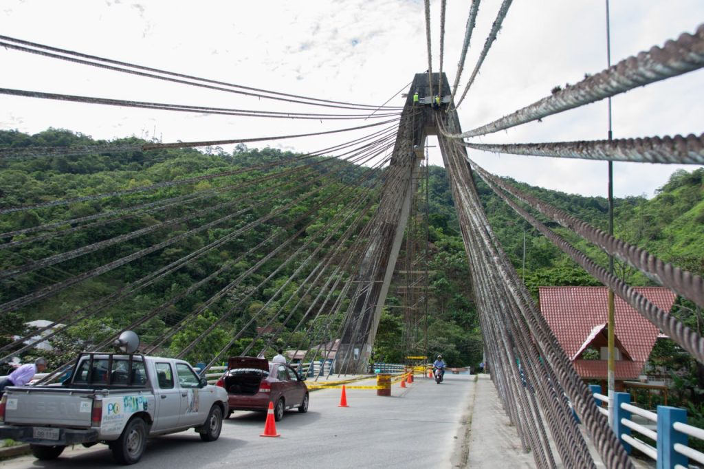 Freddy Cumbicus, administrador de este proceso de obra, indicó que, estos trabajos comprenden dos etapas de intervención (iluminación vial y ornamental). Actualmente, se encuentran con la limpieza de la estructura y remoción de los conductores, para luego continuar con el pintado de la estructura del puente (pasamano, torre y tensores); reemplazo completo de la red de alimentación de energía eléctrica para todas las luminarias; regeneración y mantenimiento de las diferentes cajas de revisión y ductos eléctricos.