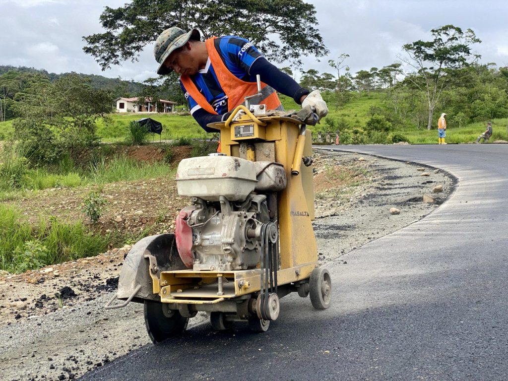 La Prefectura de Zamora Chinchipe avanza con la construcción a nivel de asfalto en el proyecto vial San Roque – San Francisco, perteneciente a la parroquia Pachicutza, cantón El Pangui.