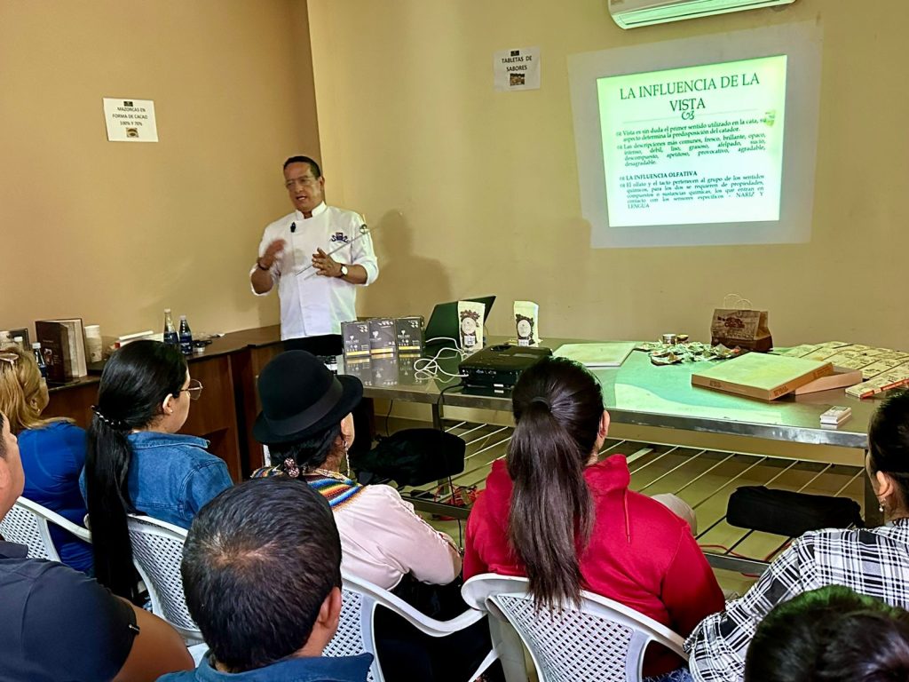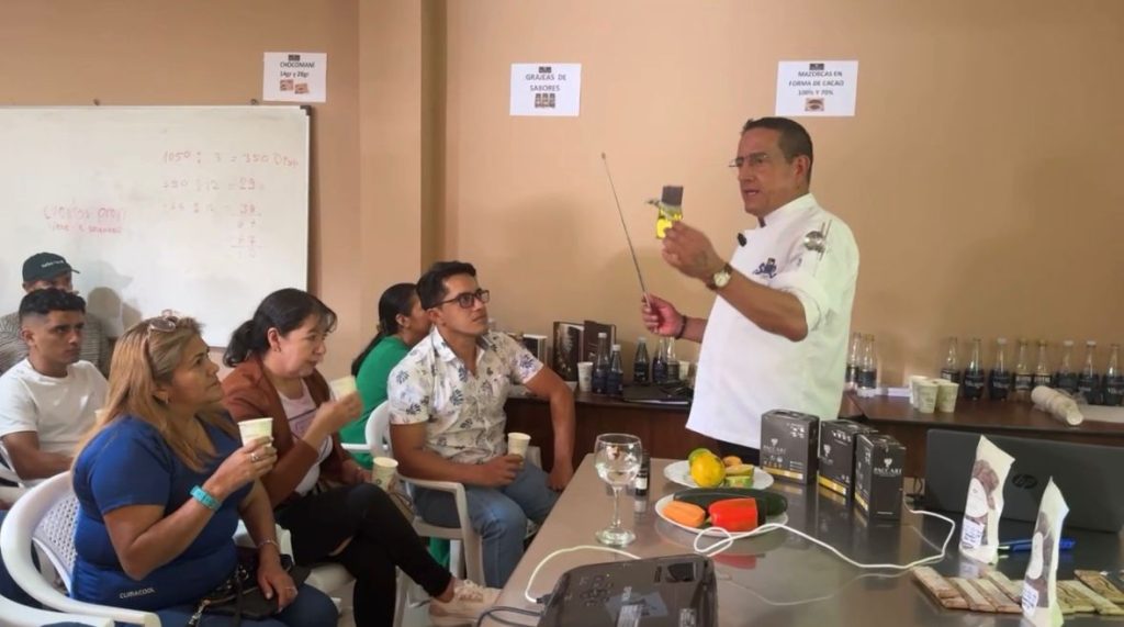 En el marco de la VII Feria Provincial del Cacao 2024, en la sede de AROMAZ, ubicado en la recta de El Pangui, se desarrolló el taller de teórico-práctico de Catación de Cacao, dictado por el reconocido chef oriundo de Imbana con trayectoria nacional e internacional, Edgar León.