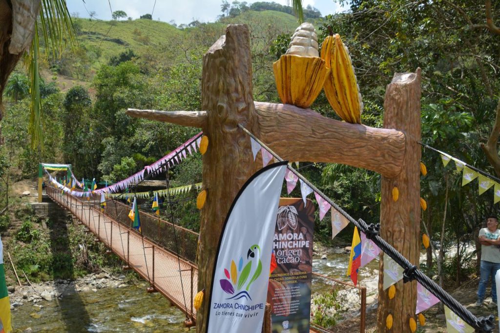 Con el objetivo de darle el impulso productivo y turístico a Palanda, la Prefectura de Zamora Chinchipe hizo la entrega oficial de la reconstrucción del puente peatonal sobre el río Valladolid, ubicado en el sitio Arqueológico Santa Ana – La Florida. El puente se destaca por tener una obra artística, que impulsa la imagen de este centro arqueológico conocido por ser el epicentro del origen del cacao en el mundo.