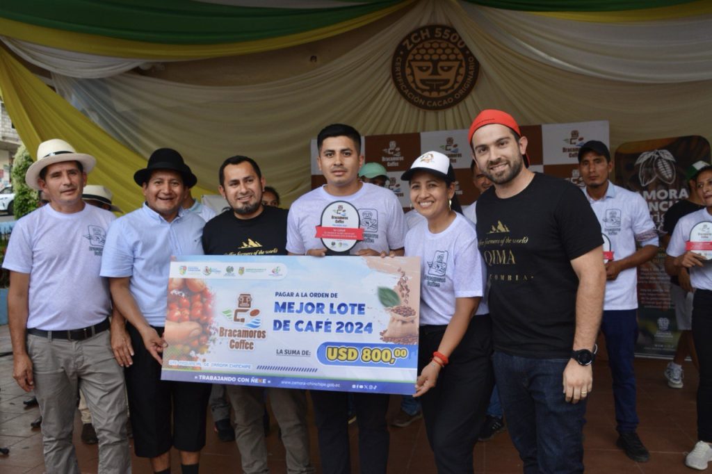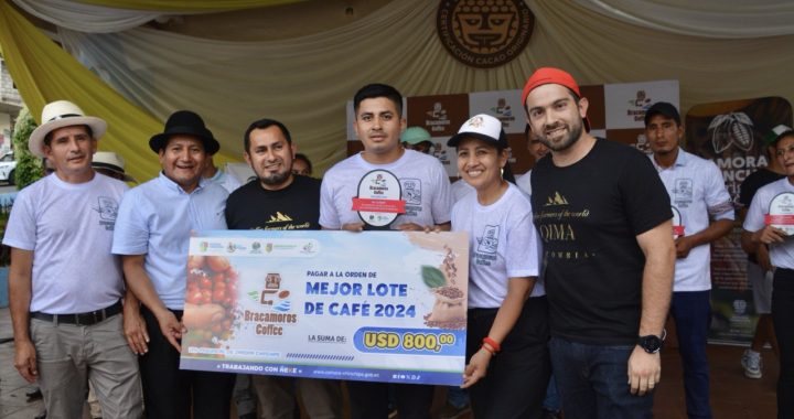El productor Klever Jiménez Alverca del sector Río Blanco, de Chinchipe se convierte en el mejor cafetalero en marco a la Bracamoros Coffee 2024, recibiendo un incentivo económico de USD 800 por parte de la Prefectura y vendiendo su lote de 5 quintales de café a la empresa Quima Coffee de Ecuador en USD 2.700. A esta feria asistieron más de 1800 personas.
