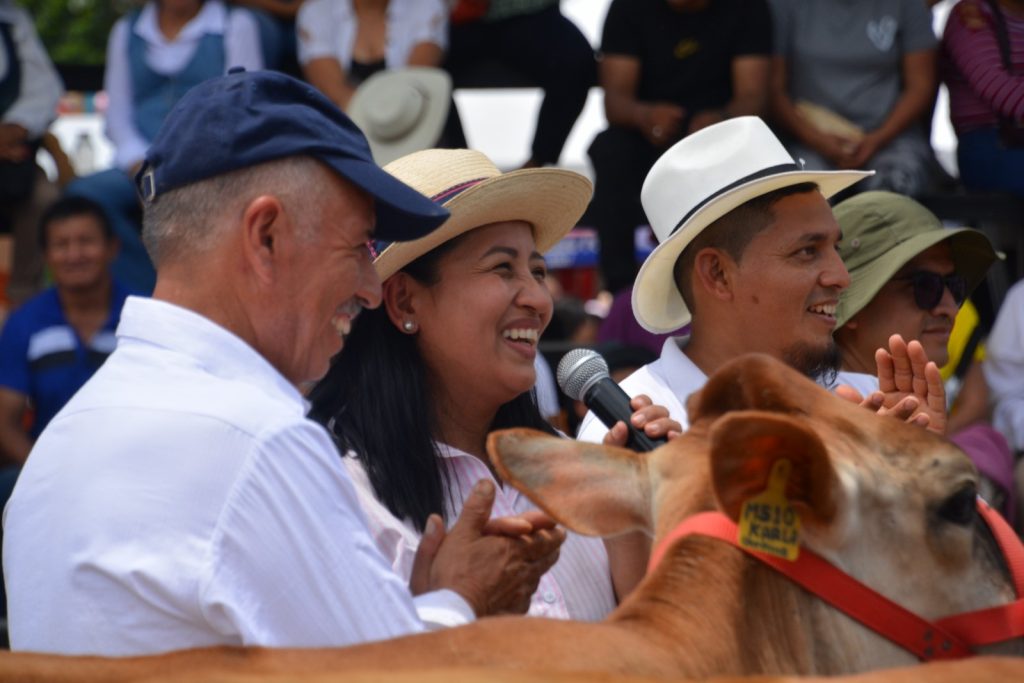 En la feria agropecuaria y productiva de El Porvenir del Carmen los emprendedores, agricultores y ganaderos llegaron con sus productos y animales para exponerlos y participar en los diferentes concursos. Aquí el concurso de la mejor vaca lechera y mejor ubre, estuvo liderado por Mónica Armijos con un total de 20 litros de leche, ella llevó un incentivo económico de USD 245.00. Para el desarrollo del encuentro, la empresa pública aportó USD 5.000.
