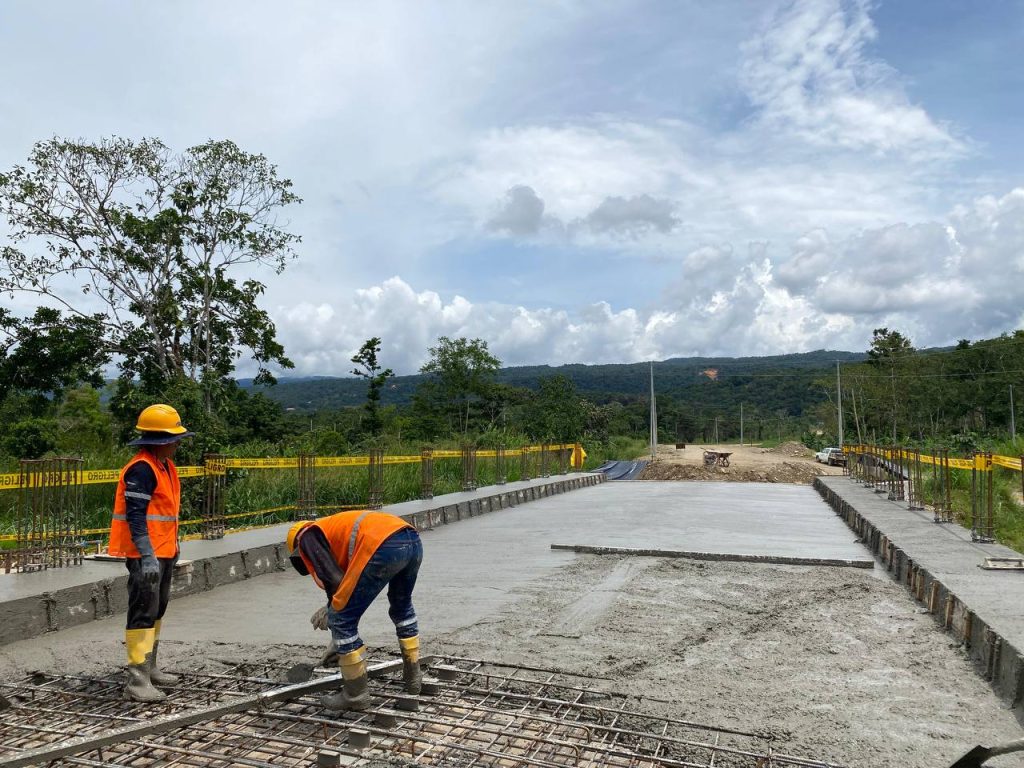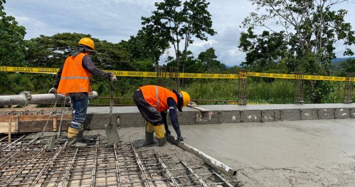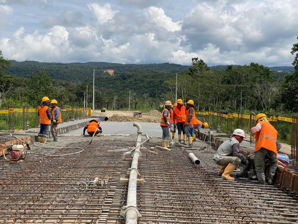 El Prefecto (E), Víctor Sarango, inspeccionó la fundición de la losa del viaducto, una pieza clave en el proyecto de asfalto de la vía El Pangui – Shakay.